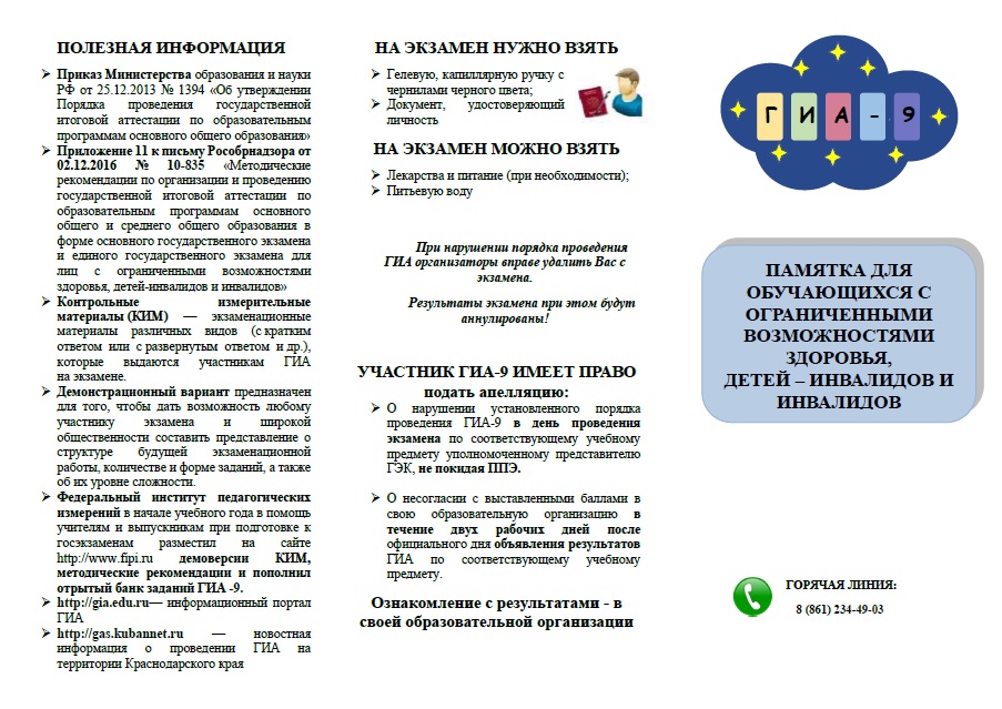 Памятка для обучающихся с ограниченными возможностями здоровья, детей-инвалидов и инвалидов