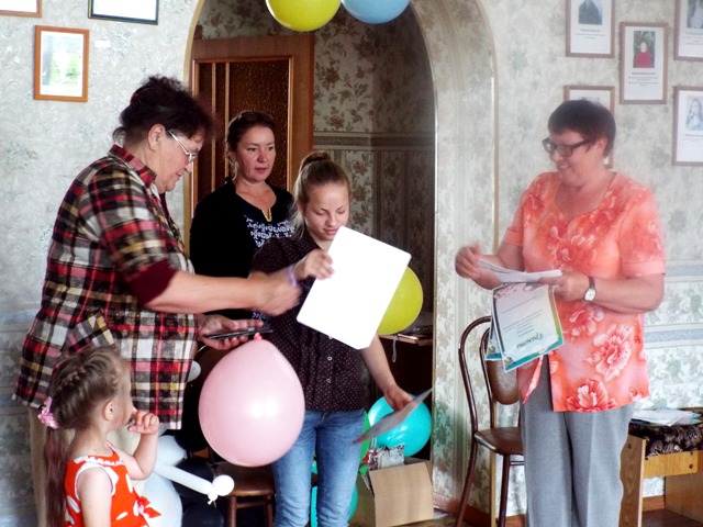 От администрации Троицкого сельсовета детей и педагогов с окончанием учебного года поздравила Дрюпина М.А., которая вручила благодарственное письмо завучу Михайлец Л.П. за многолетний и добросовестный труд в деле воспитания молодого поколения. А чтобы воспитанникам центра было чем заняться в летние каникулы, она подарила им настольные игры и сладости от имени предпринимателей Нелли и Евгения Герман (магазин "Клаксон") и Антоновой Александры (магазин "Алёнка").