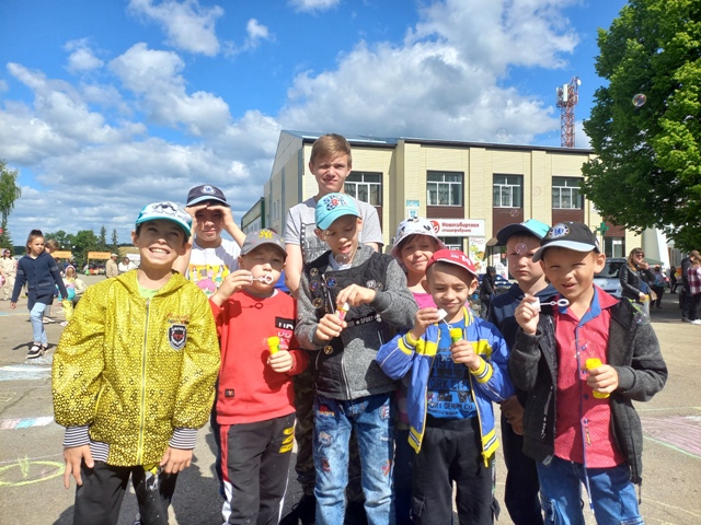 На центральной площади весело и шумно, отовсюду звучит музыка и детский смех! Праздник начался с весёлых игровых состязаний, где ребятам предстояло проявить свои спортивные, интеллектуальные и творческие способности. За выполненные задания ребята получали сладкие призы, мороженное и сладкую вату. А ещё ребятня посидела в настоящей пожарной машине! Завершился праздник конкурсами рисунков на асфальте.
