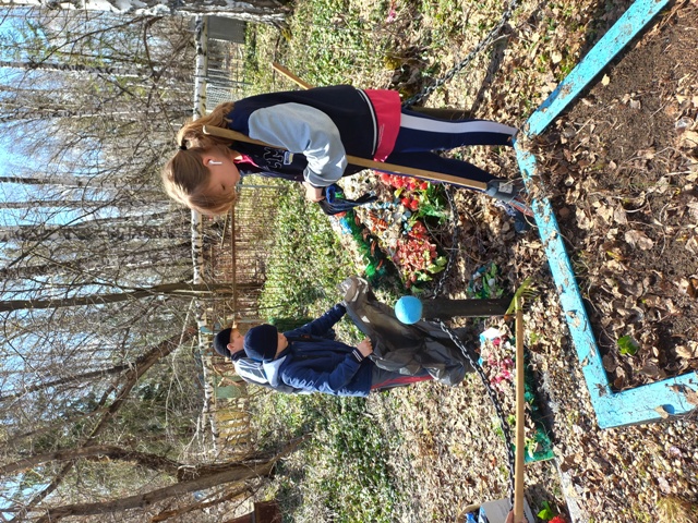 Хочется отметить, что ребята Центра ежегодно, на протяжении 20 лет ухаживают за братской могилой (официально шефствует над захоронением детский дом с 1997 года): осенью убирают листья, весной от прошлогодней травы и мусора, возлагают цветы ко дню Победы.