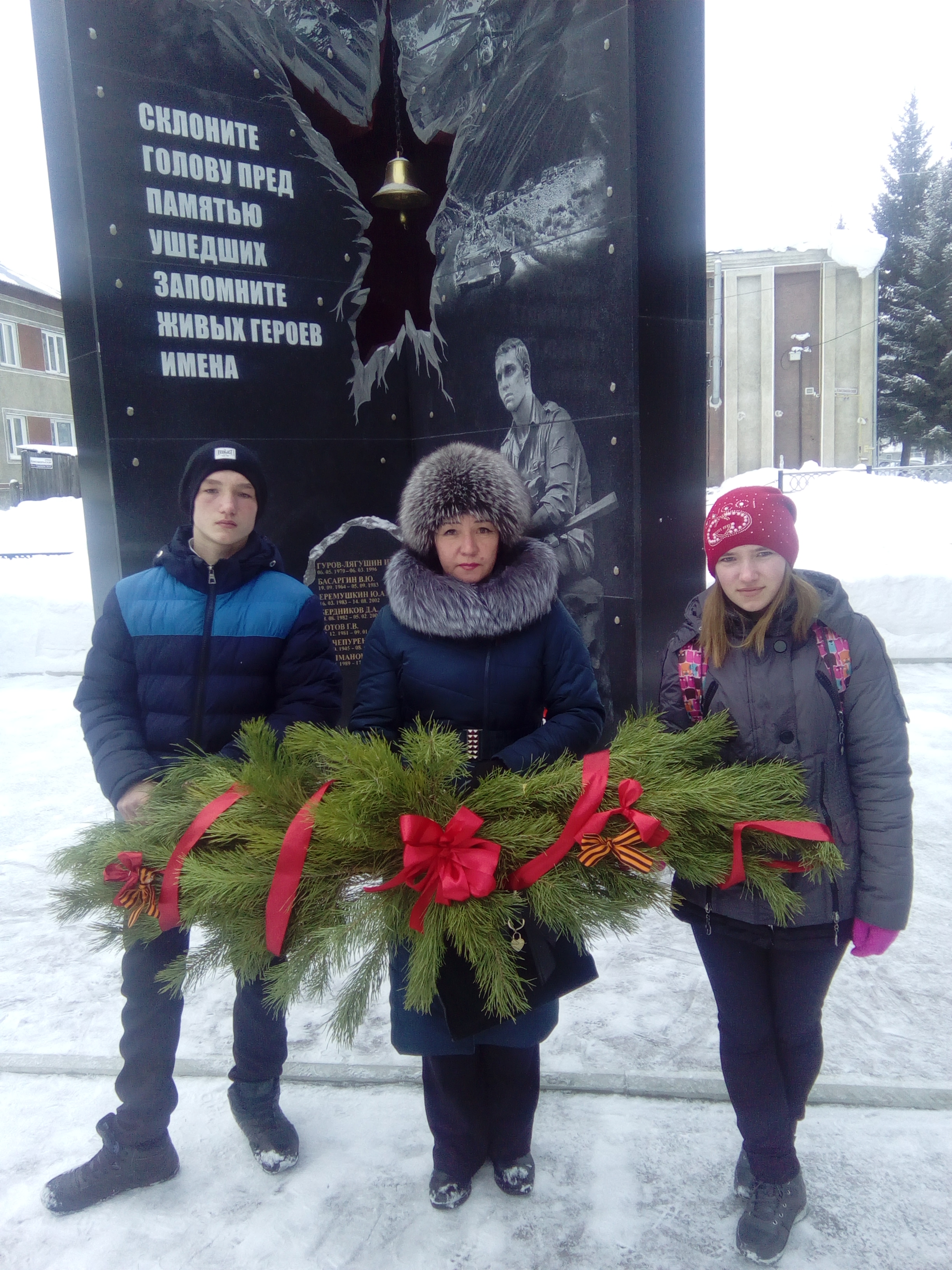 В дань памяти о воинах-интернационалистах, павших в Республике Афганистан, воспитанники и педагоги Центра возложили к мемориалу гирлянду, которую воспитанники сплели из веток ели и перетянули алой атласной лентой и живые красные гвоздики, символизирующие мужество, стойкость, преодоленные трудности и пролитую кровь наших солдат при исполнении служебного долга за пределами Отечества.