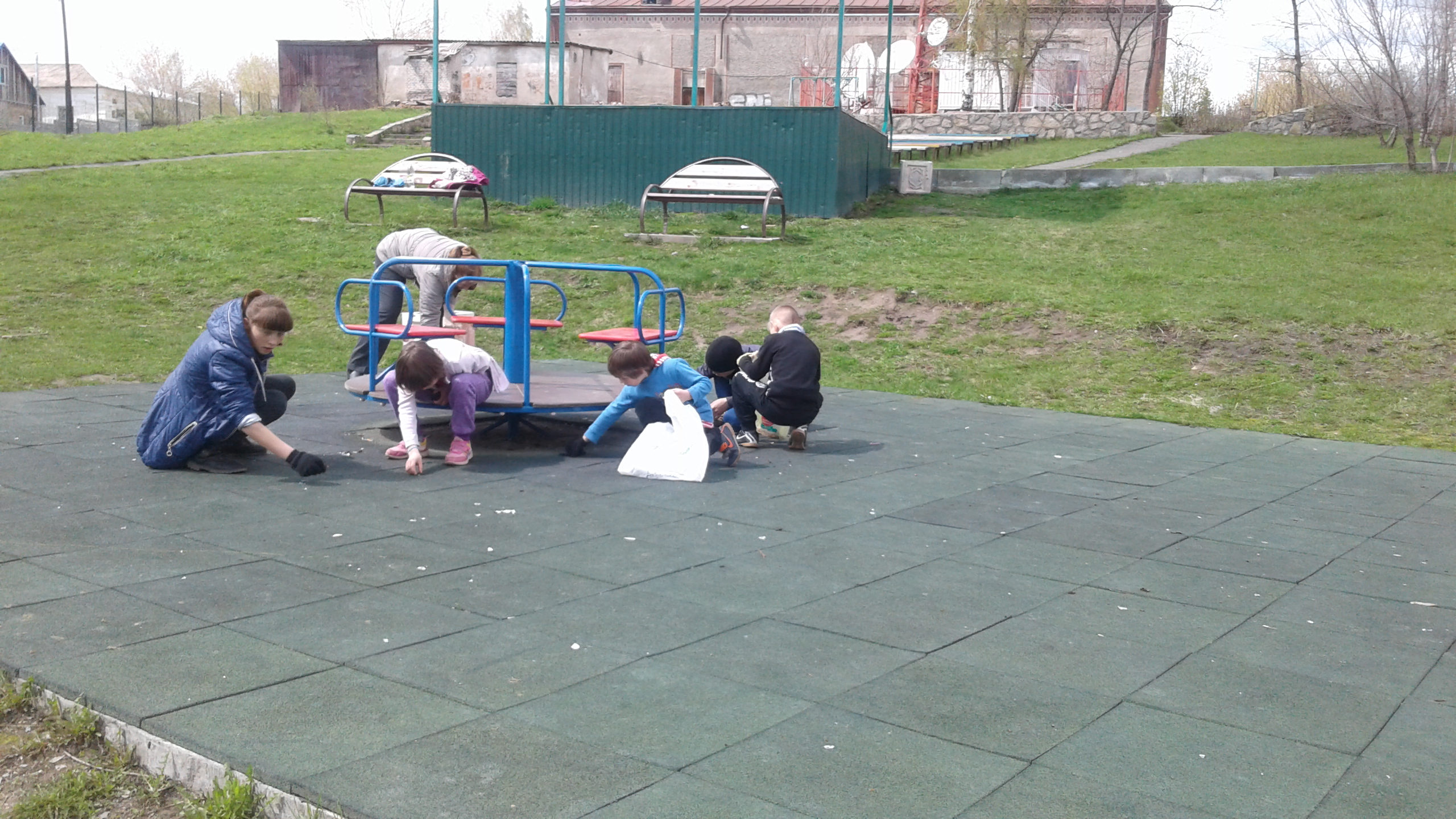 Самое любимое место развлечения для детей детская площадка. К сожалению не на всех площадках можно играть без опасения. Детские площадки превращены в территории для мусора где много разбитого стекла от бутылок, полиэтиленовых мешочков, бумажек, фантиков от конфет и пакетиков, а также пластиковых бутылок. В связи с этим, по инициативе воспитателей Нечунаевой М.Ф., Пермяковой Т.М., Трубникова В.А., и воспитанников нашего Центра 13 мая была проведена акция «День добрых дел».