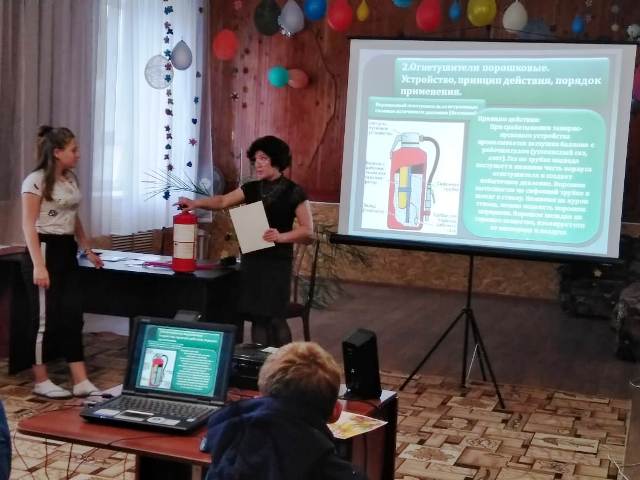Воспитанники просмотрели презентацию «Первичные средства пожаротушения и правила их использования». Осмотрели места дислокации противопожарных щитов, познакомились с оборудованием, расположенным на этих щитах. Повторили правила пользования огнетушителями.