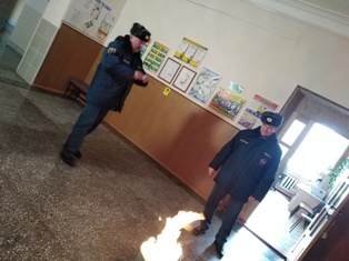 Эвакуация прошла совместно с сотрудниками пожарной части. Присутствовали начальник 31 ПСЧ ФПС ГПС ФГКУ «3 отряд ФПС по Алтайскому краю» Циммерман Е.В, и Пищик В.Н.