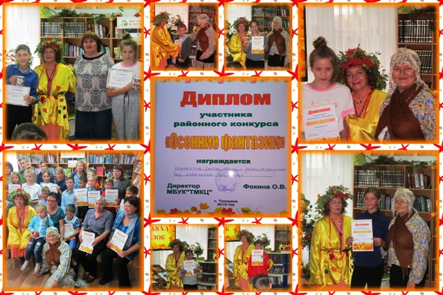 В районной библиотеке прошло праздничное мероприятие «Щедрая осень» с подведением итогов районного конкурса «Осенние фантазии». И конечно же, наши воспитанники стали участниками данного мероприятия.