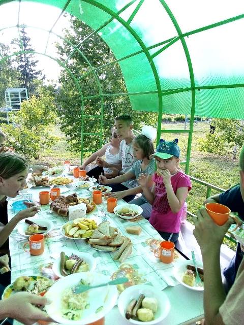 В течение дня ребята участвовали в краевых и всероссийских онлайн – акциях и конкурсах, на спортивной площадке педагоги подготовили спортивные состязания, а итог дня подвёл ужин, приготовленный на костере и весёлая дискотека.