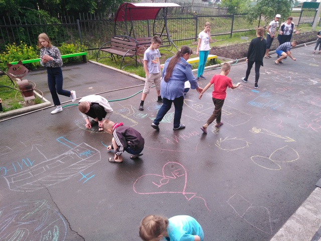 Праздник начался с музыкального подъёма, настроение ребятам подняла утренняя флешмоб-зарядка, затем во дворе дома дети рисовали на асфальте цветными мелками. Все участвующие в конкурсе рисунков получили мороженное от сотрудников прокуратуры Троицкого района.