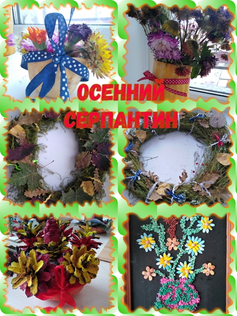 С 8 по 18 октября в нашем доме прошла выставка поделок из природного материала «Осенний серпантин». Для создания маленьких «шедевров» использовались дары осени – овощи, фрукты, сухоцветы, жёлуди, шишки, мох, ягоды.