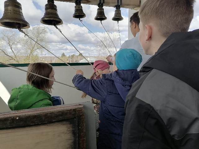 В светлый праздник Пасхи ребята вместе с педагогами посетили Храм, им всё было интересно, а что интересно, то и остаётся надолго в памяти. Не забудется подъём на колокольню, вид села с высоты птичьего полёта и возможность позвонить в колокола.