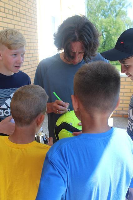 В этот солнечный день гости приехали на позитиве и привезли ребятишкам подарки! Конечно же, не обошлось без дружеского матча. Эмоции переполняли ребят – не каждый день судьба преподносит сюрприз в виде игры в футбол со знаменитым спортсменом! Закончился визит совместным чаепитием, во время которого ребята задавали Алексею Смертину вопросы как о футбольной карьере, так и личной жизни.