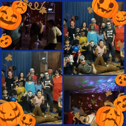 - шумная костюмированная вечеринка в честь праздника «Хэллоуин», которая не обошлась без традиционных атрибутов: маскарадные костюмы, тыквы, летучие мыши, пауки ,фонари и т.д. В это день абсолютно все были в ярких костюмах: ведьм, вампиров, скелетов, колдунов, оборотней и летучих мышей, сделанных своими руками с помощью воспитателей.