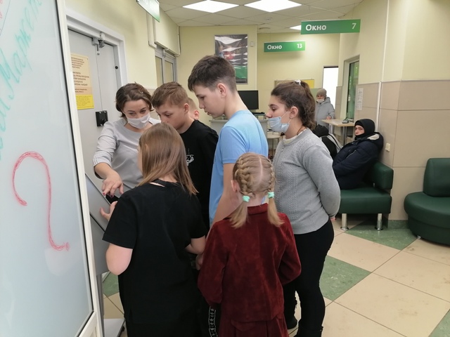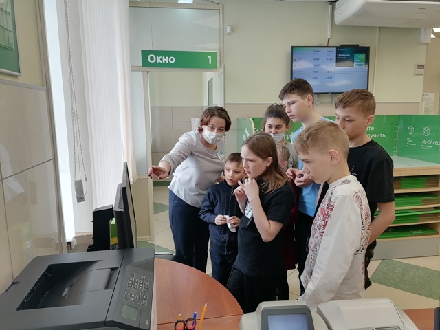 Сегодня ребята нашего Центра совершили экскурсию в сбербанк, тема экскурсии «Сотрудники банка. Безопасный банк». Вера Александровна, заведующая отделения, рассказала ребятам про сотрудников банка и их работу. Объяснила, что посетители в любое удобное время, могут воспользоваться услугой банкомата. Банкоматы позволяют снять деньги, или наоборот, пополнить счет, получить банковскую выписку. Вера Александровна познакомила воспитанников с пластиковой картой и показала ребятам, как правильно ею пользоваться. Все операции в банке осуществляются при наличии у клиентов документа удостоверяющего личность – это паспорт.