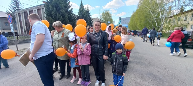 В праздничном шествии приняли участие все воспитанники и сотрудники учреждения. С шарами и георгиевскими ленточками сотрудники и самые маленькие воспитанники Центра прошли колонной в Параде организаций.
