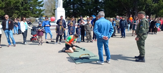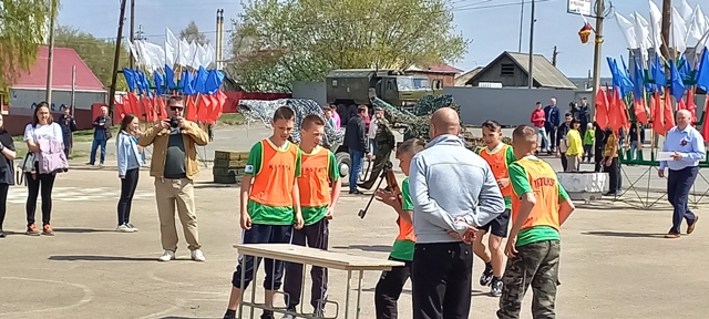 После митинга и торжественного возложения цветов к мемориалу ребята впервые приняли участие в ставшей уже традиционной военной эстафете. Эстафета состояла из нескольких этапов и на каждом этапе мальчишки выкладывались по полной. В итоге 5 место у наших ребят!