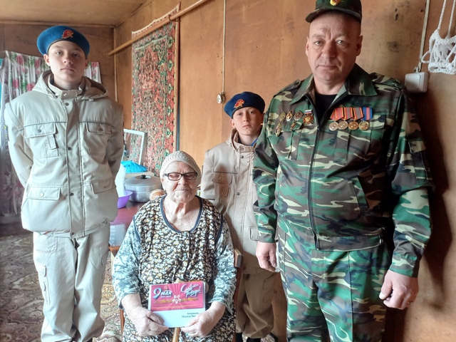 В преддверии празднования 78-й годовщины Победы в Великой Отечественной войне 1941-1945 гг. ребята юнармейского отряда Центра помощи «Патриот» приняли участие в патриотической акции «Поздравь ветерана». Ребята совместно с Троицким отделением Алтайского краевого союза ветеранов Чечни поздравили тружеников тыла с праздником – 9 Мая. Ребята с удовольствием общались с теми, кто годится им в прабабушки и прадедушки.